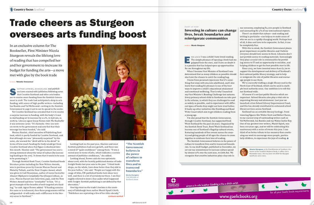The focuses are now an embedded part of the magazine and the effects far-ranging. A piece I commissioned on Gaelic literature led to a discussion of the language on BBC Radio, and the country focuses have been used to lobby government on the importance of supporting the book trade.